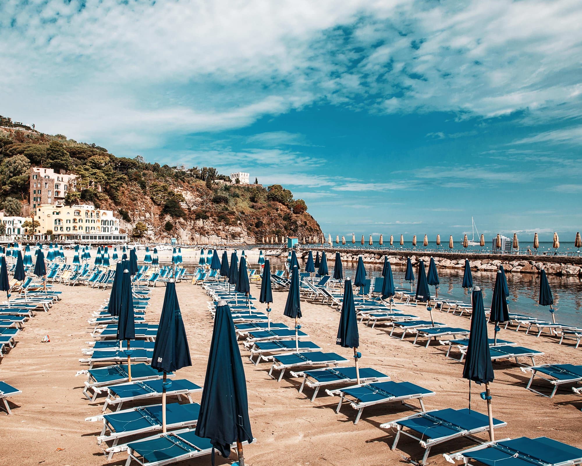 Welcome to Lacco Ameno, a jewel nestled on the enchanting island of Ischia, off the coast of Naples, Italy. This charming town, the smallest municipality on the island, is renowned for its therapeutic hot springs, rich history, and breathtaking landscapes. A perfect blend of culture, relaxation, and natural beauty awaits every traveler in this picturesque corner of the Mediterranean. Begin your Lacco Ameno adventure by strolling through the quaint streets lined with boutiques, cafes, and local artisan shops. The town's landmark, Il Fungo, a mushroom-shaped rock just a few meters off the shore, creates a unique seascape and is a favorite subject for photographers. History enthusiasts must visit the Museo Villa Arbusto, which houses the Pithecusae Archaeological Museum, displaying artifacts from Ischia's ancient past, including the famous Nestor's Cup with its Homeric inscription. No trip to Lacco Ameno is complete without indulging in the healing powers of its thermal waters. The renowned Terme di San Montano, a spa complex set amidst a verdant park, offers a range of treatments that harness the natural resources of the island's volcanic origins. After rejuvenating your body and mind, take a leisurely walk to the Bay of San Montano, with its soft sandy beach and crystal-clear waters, providing a serene escape and a perfect spot for swimming and sunbathing. As the sun sets, savor the flavors of the island at one of Lacco Ameno's delightful restaurants or trattorias. Local dishes, often featuring freshly caught seafood and Ischia's famous rabbit, are paired with exquisite local wines, ensuring a gastronomic experience that will satisfy even the most discerning palate. With its combination of natural wonders, historical treasures, and culinary delights, Lacco Ameno promises an unforgettable Italian island getaway.
