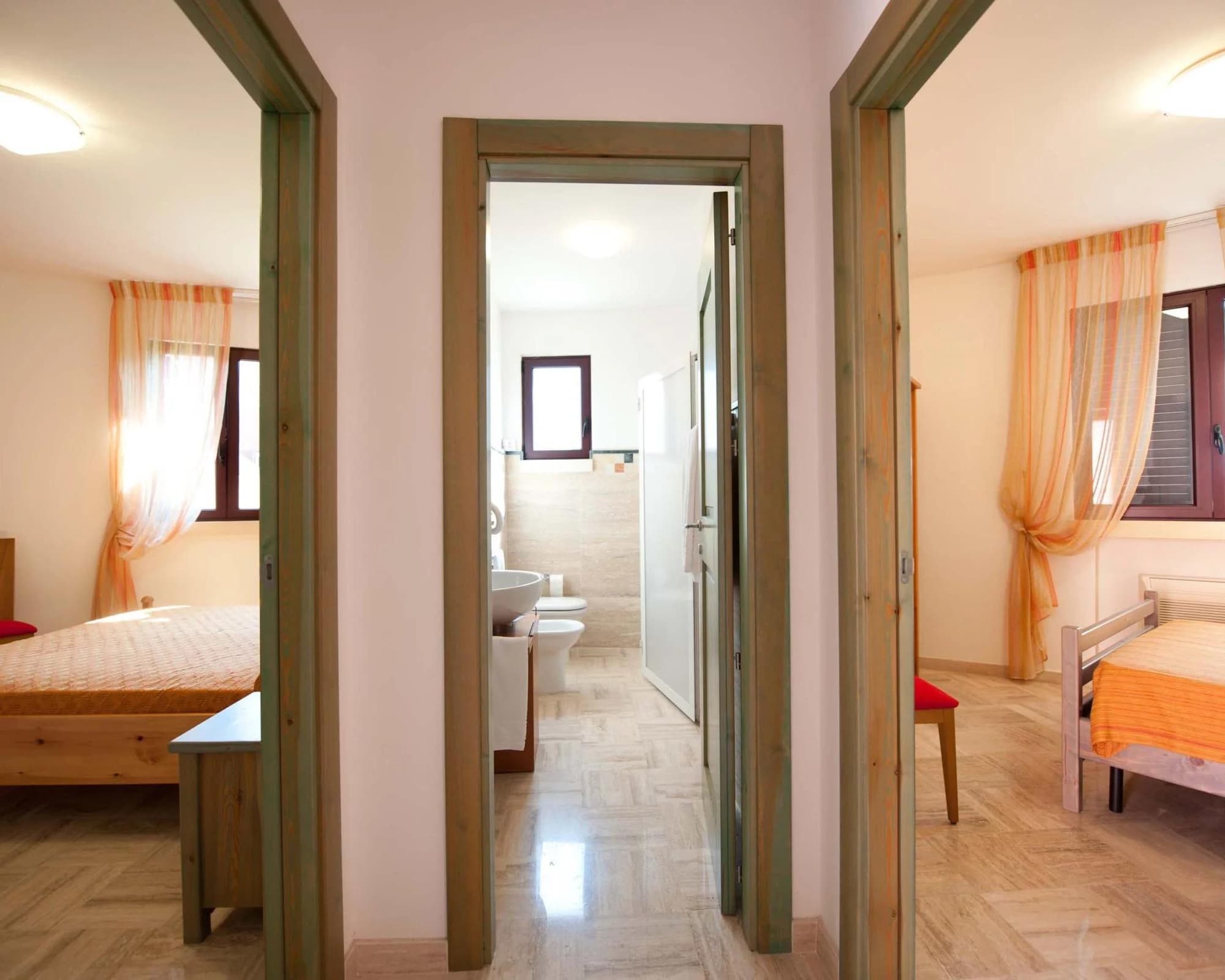 Le camere Family Classic sono situate al primo piano dell’Hotel, sopra la reception e la sala colazione. Ampie e luminose, arredate con stile moderno e pavimento in marmo, dispongono di un letto matrimoniale e un letto a castello e, se necessario, vi è la possibilità di aggiungere una culla. Questa tipologia è ottimale per le famiglie che hanno sia bambini piccoli che ragazzi, in quanto sono spaziose e dotate dei comfort necessari.