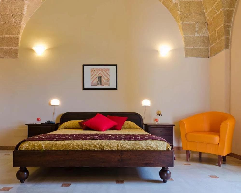 Al primo piano dell’Antica Masseria, a bordo alle piscine. Si presentano come un elegante bilocale, costituito da una stanza da letto matrimoniale, un salotto con divano letto da una piazza e mezza e un bagno. Questa camera è stata ricavata dall’ accurato restauro condotto nel pieno rispetto delle forme e dei materiali originali dell’antica Masseria. Una palette allegra di colori caldi riscalda l’ambiente, mentre eleganti porte in legno autoctono separano l'ampio salotto e dalla zona notte, con un bagno in pregiato marmo.