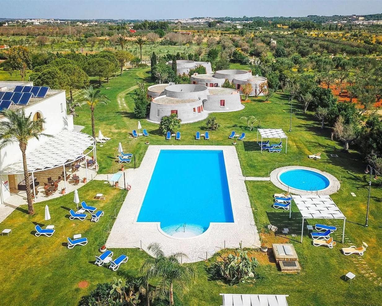 La Tenuta è una struttura a basso impatto ambientale, completamente recintata, sorge su 12 ettari di macchia mediterranea. Ulivi secolari, piante di rosmarino, salvia ed altri profumi, cattureranno il vostro olfatto. Una passeggiata nel parco vi regalerà momenti unici ed in totale relax, assaporando la tranquillità di una vera e propria oasi di verde. La sua posizione strategica, nel cuore del Salento, permette di alternare momenti di relax, coccolati dalla pace della natura, a momenti di avventurosa ricerca dei numerosi svaghi, di cui il lato ionico del Salento è generoso. Dalla ristrutturazione del grande e antico casale, nasce una splendida Casa Colonica, affacciata sulla piscina e all’interno della quale vi sono dieci stanze tra Deluxe e Suite. Alcune sono caratterizzate da soffitti a volta in pietra, altre decorate con affreschi e stucchi, e altre dotate di camino e letto a baldacchino. L’Hotel 4 stelle, con la recente ristrutturazione, ha cambiato “look”, arricchendosi di decori in pietra leccese, che danno un tocco ancora più raffinato alla struttura. Sorgono tra gli ulivi le caratteristiche costruzioni che riprendono la tipologia architettonica delle antiche “pajare” salentine.