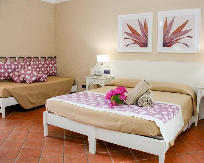 Hotel Club: in un edificio a due piani e più vicine al mare le camere sono a 2-3 letti, dotate di telefono privato con possibilità di connessione a Internet, TV con accesso ai canali Sky, minifrigo, cassaforte, asciugacapelli, aria condizionata.
